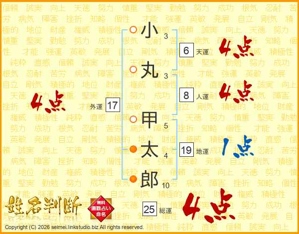 小丸甲太郎さんの総運は25画の4点!