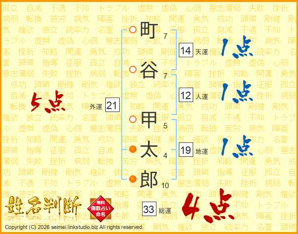 町(7画)谷(7画) 甲(5画)太(4画)郎(10画)