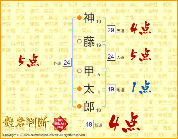 神(10画)藤(19画) 甲(5画)太(4画)郎(10画)