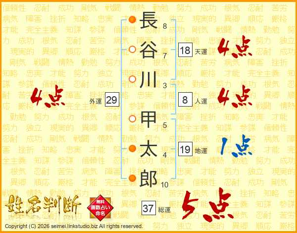長谷川甲太郎さんの総運は37画の5点!