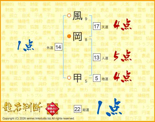 風岡甲さんの人運は13画の5点!