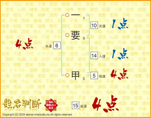 一要甲さんの総運は15画の4点!