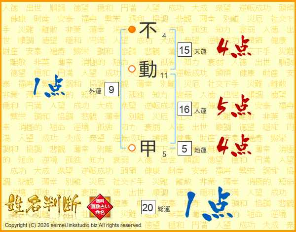 不動甲さんの天運は15画の4点!