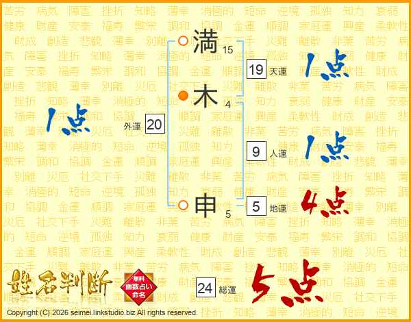 満木申さんの総運は24画の5点!