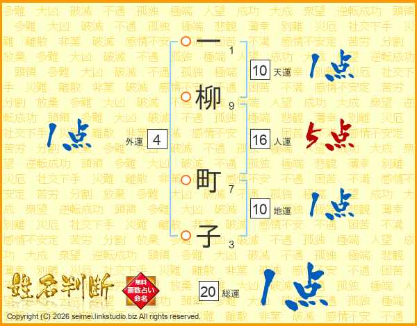 一柳町子さんの総運は20画の1点!