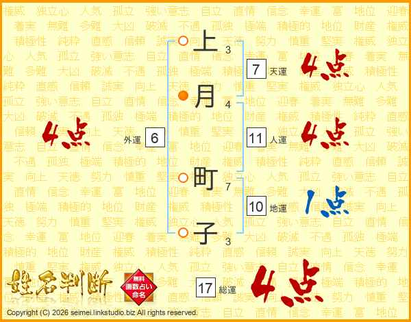 上月町子さんの総運は17画の4点!