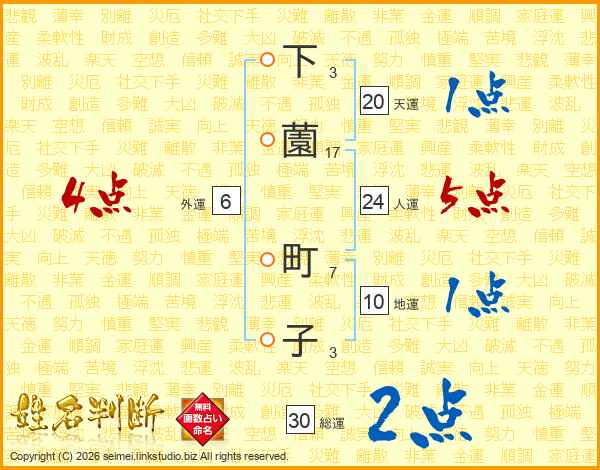 下薗町子さんの総運は30画の2点!