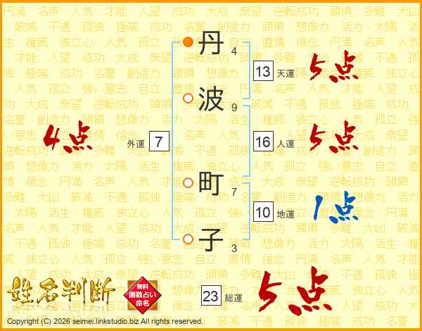 丹波町子さんの天運は13画の5点!
