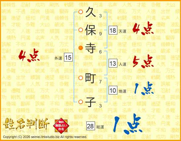 久保寺町子さんの天運は18画の4点!