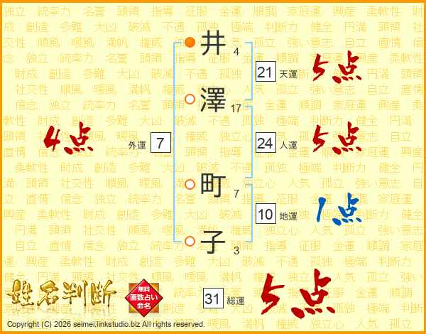 井(4画)澤(17画) 町(7画)子(3画)