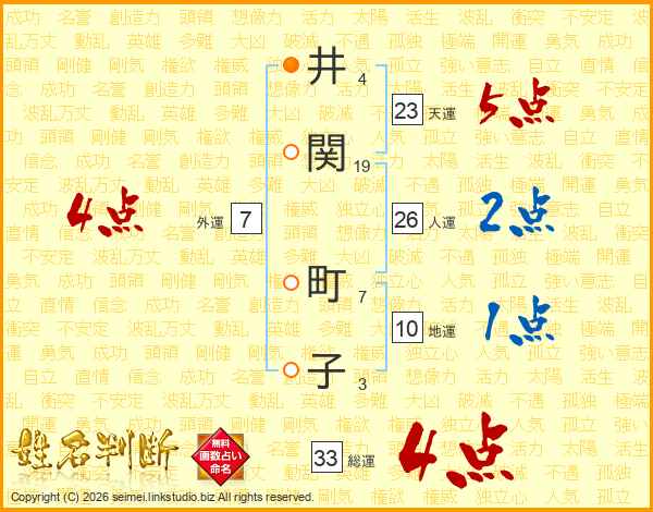 井関町子さんの総運は33画の4点!