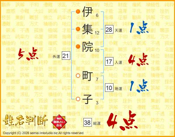 伊(6画)集(12画)院(10画) 町(7画)子(3画)