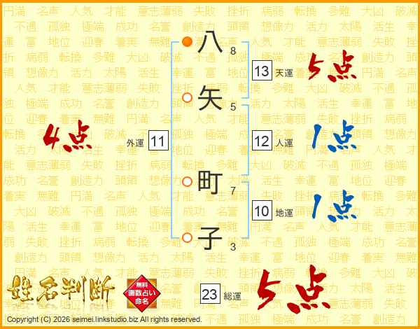八矢町子さんの総運は23画の5点!