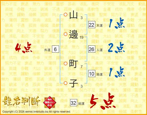山邊町子さんの総運は32画の5点!