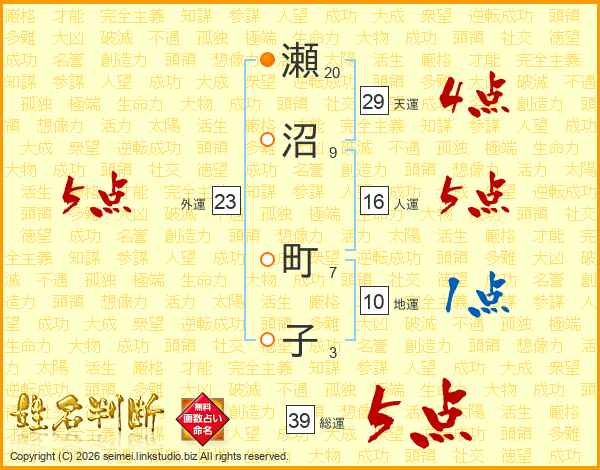 瀬(20画)沼(9画) 町(7画)子(3画)