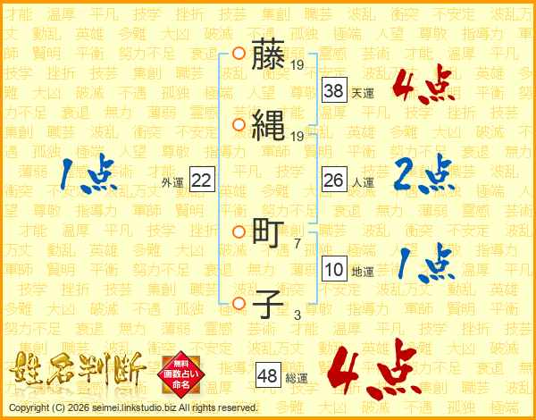藤縄町子さんの総運は48画の4点!