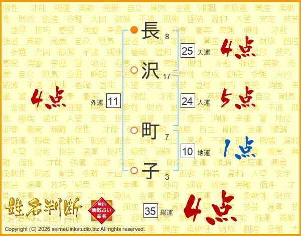 長沢町子さんの総運は35画の4点!