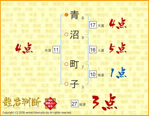 青沼町子さんの天運は17画の4点!