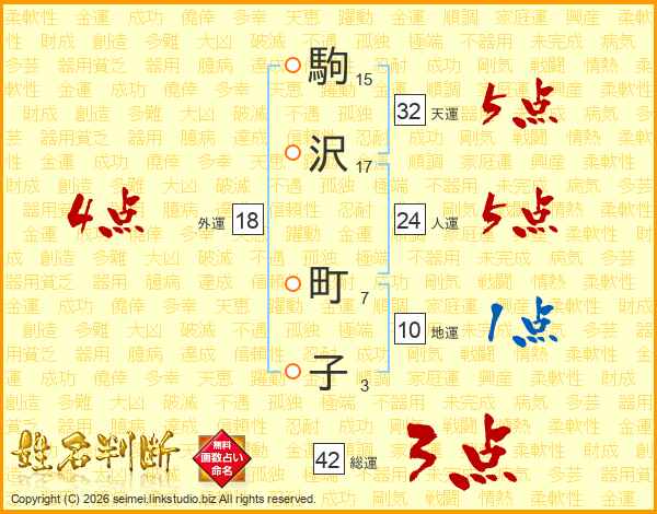 駒沢町子さんの総運は42画の3点!