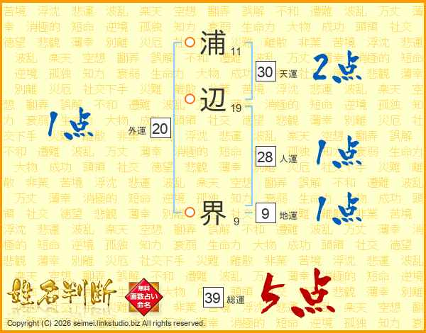 浦辺界さんの総運は39画の5点!