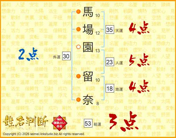 馬場園留奈さんの総運は53画の3点!