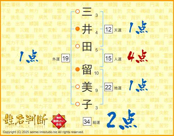 三(3画)井(4画)田(5画) 留(10画)美(9画)子(3画)