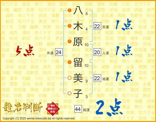 八木原留美子さんの総運は44画の2点!