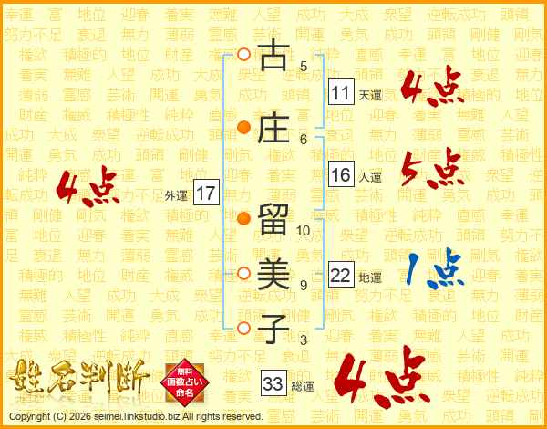 古庄留美子さんの総運は33画の4点!