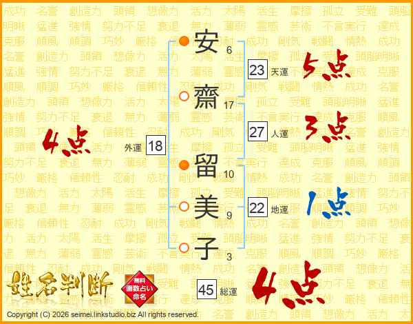 安齋留美子さんの総運は45画の4点!
