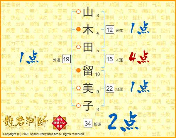 山木田留美子さんの地運は22画の1点!