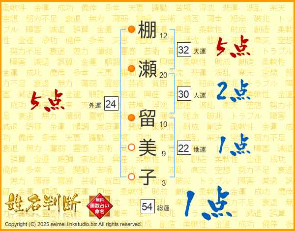 棚瀬留美子さんの天運は32画の5点!