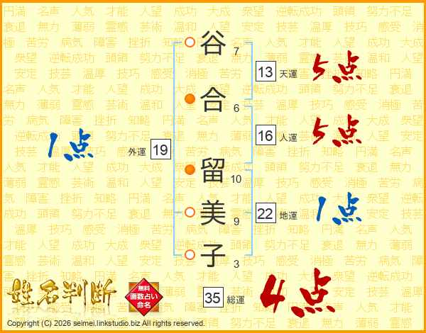 谷合留美子さんの総運は35画の4点!