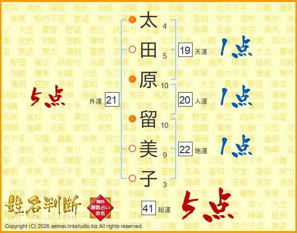 太田原留美子さんの外運は21画の5点!