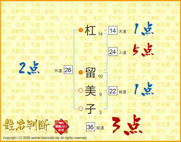 杠留美子さんの総運は36画の3点!