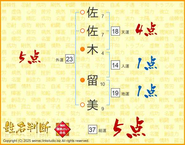 佐(7画)佐(7画)木(4画) 留(10画)美(9画)