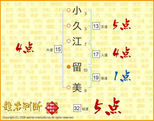 小(3画)久(3画)江(7画) 留(10画)美(9画)