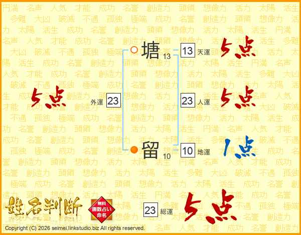 塘留さんの人運は23画の5点!