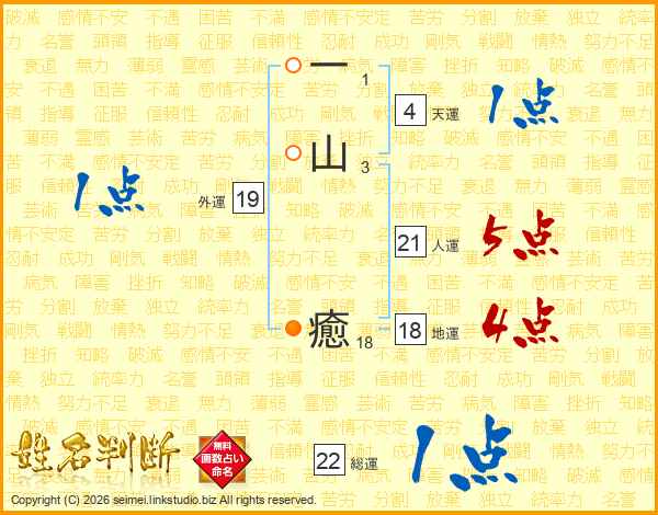 一山癒さんの総運は22画の1点!