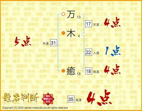 万(13画)木(4画) 癒(18画)