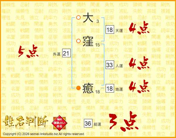 大窪癒さんの天運は18画の4点!