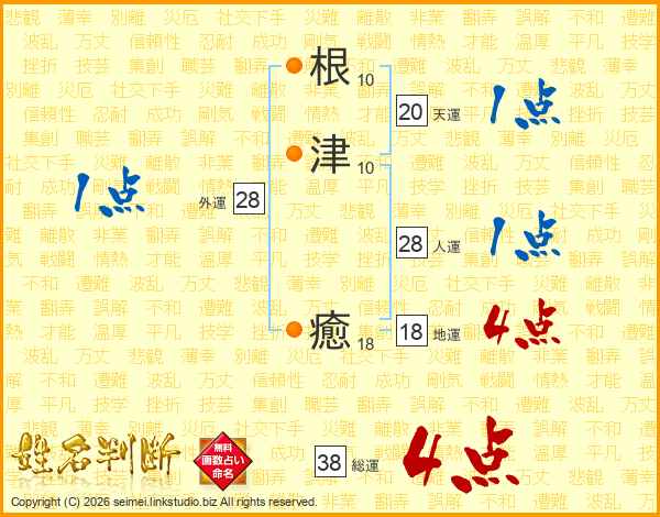 根(10画)津(10画) 癒(18画)