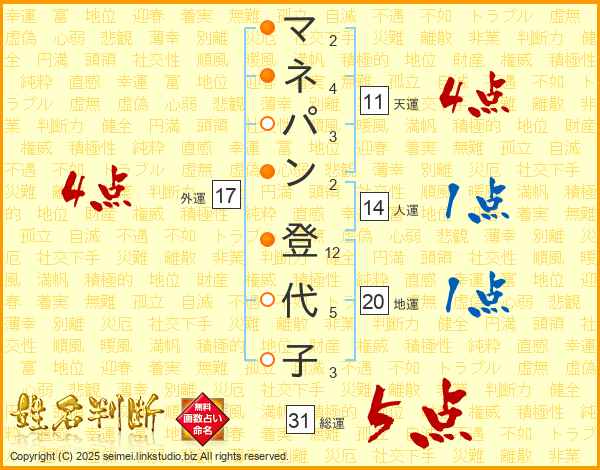マネパン登代子さんの総運は31画の5点!