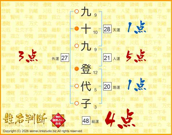 九十九登代子さんの総運は48画の4点!