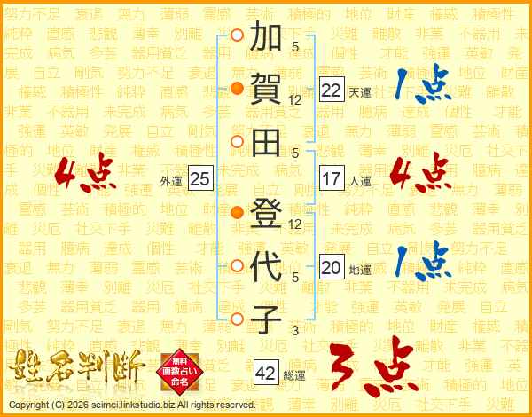 加賀田登代子さんの総運は42画の3点!