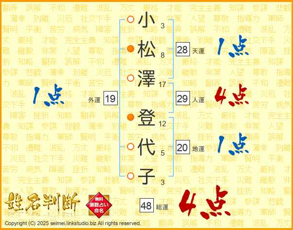 小松澤登代子さんの総運は48画の4点!