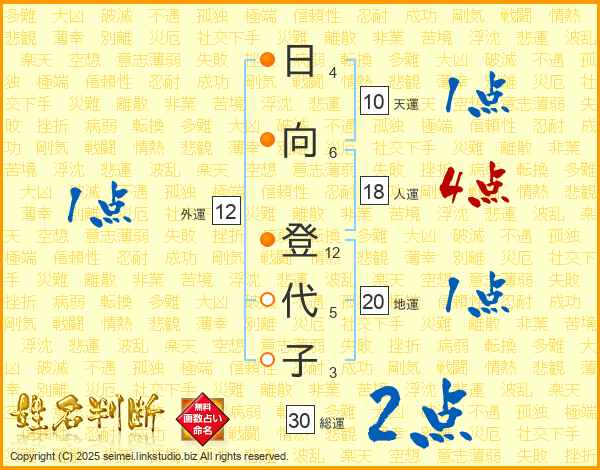 日(4画)向(6画) 登(12画)代(5画)子(3画)