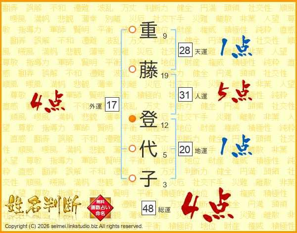 重藤登代子さんの総運は48画の4点!