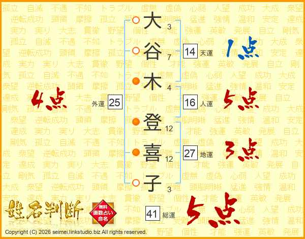 大谷木登喜子さんの総運は41画の5点!