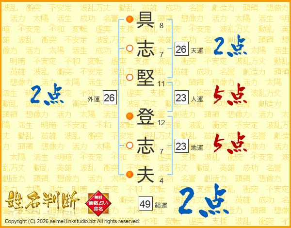 具(8画)志(7画)堅(11画) 登(12画)志(7画)夫(4画)