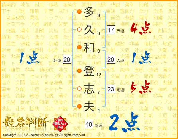 多久和登志夫さんの人運は20画の1点!